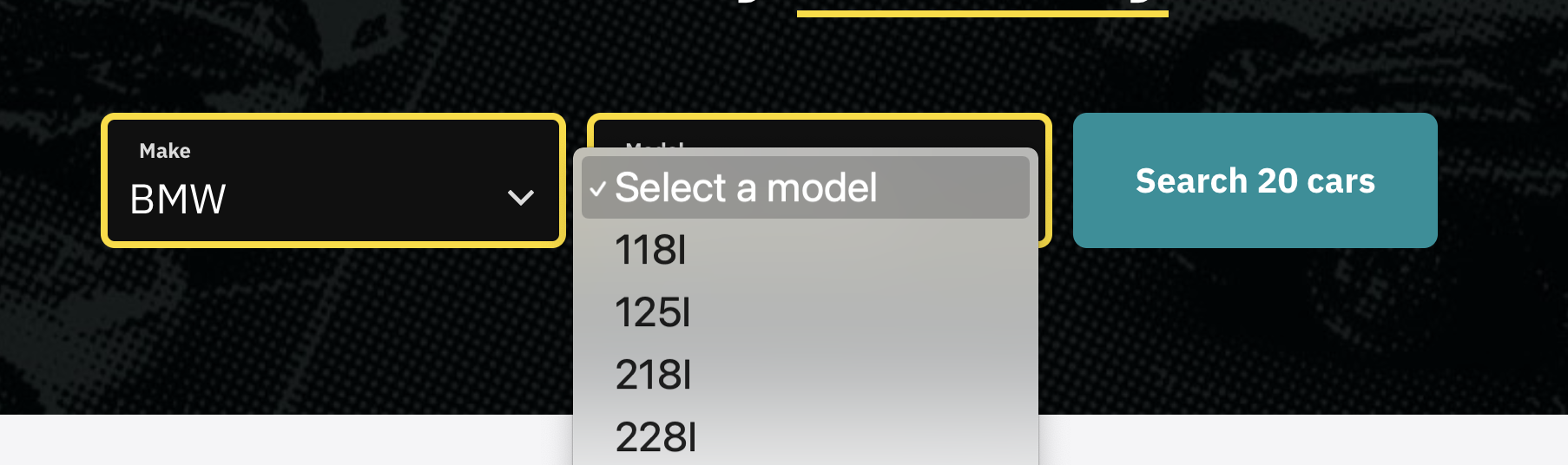 Use smart drop downs to find a vehicle.